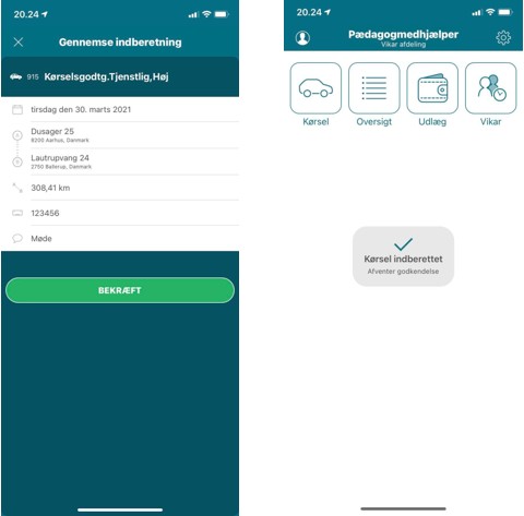 Når du har registreret kørsel ved hjælp af kørselsappen, bliver kørslen kontrolleret og godkendt, før den kommer til udbetaling. Udbetalingen sker sammen med månedslønnen. Evt. udlæg i forbindelse med tjenstlig kørsel, f.eks. parkeringsafgift skal udbetales gennem økonomisystemet.