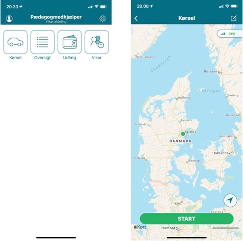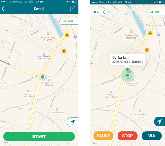 Det er muligt at sætte appen til at spore din rute. Tryk på "Kørsel" i hovedmenuen. Er din GPS-funktion slået til, kan du let starte den automatiske opmåling af din kørsel – blot tryk på "START".